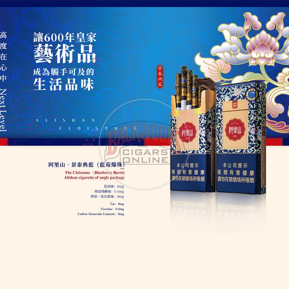 Alishan Cloisonne Blueberry Burst Cigarettes — Flue-cured cigarettes with capsule filter and moderate tar profile