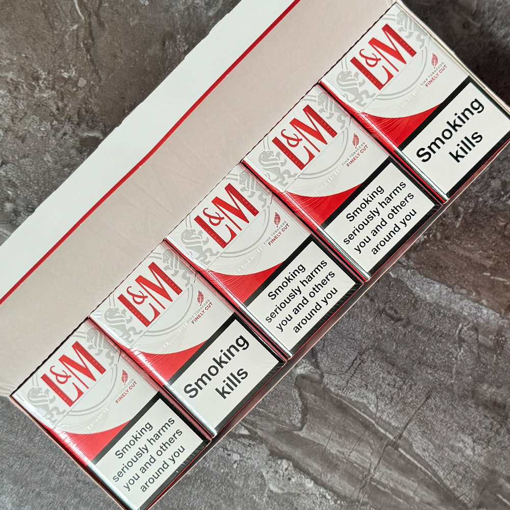 L&M Red Label cigarettes, produced by Philip Morris International, are renowned for their robust and full-bodied flavor, catering to smokers who prefer a traditional, strong tobacco taste.